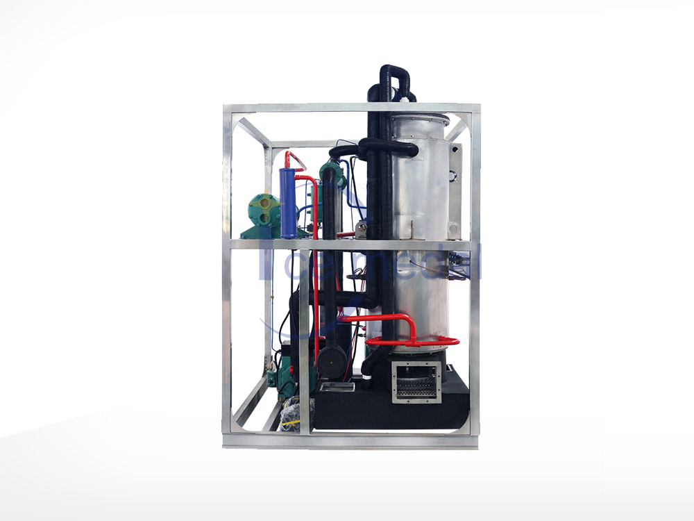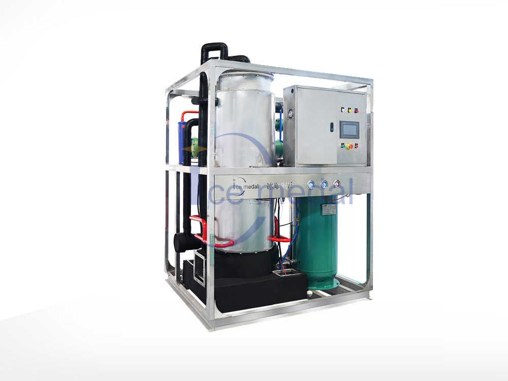 2、管冰機(jī)所有與制冰水接觸部分材質(zhì)均是食用級材料。 由多根不銹鋼管組成蒸發(fā)器制冷劑在管與管之間流動,水在管內(nèi)從上往下在分水器的作用下呈螺旋狀流動, 水在流動過程中形成冰。